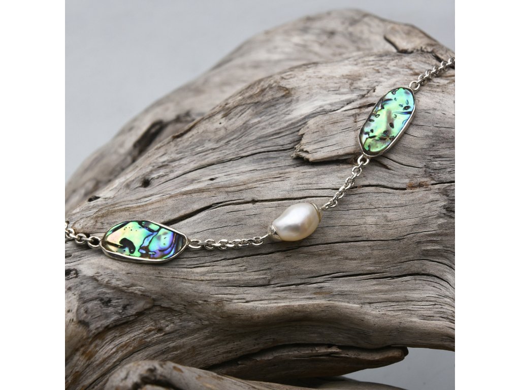 Materiál: stříbro Ag 925/1000, paua perleť (Haliotis iris), říční perla (fresh water)