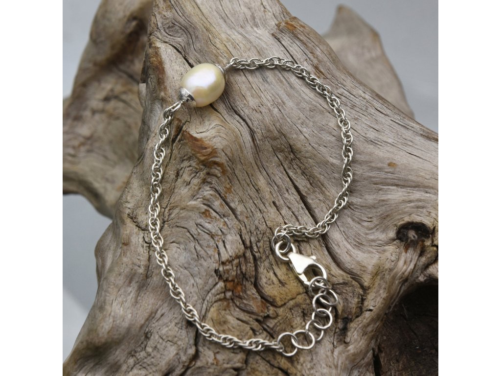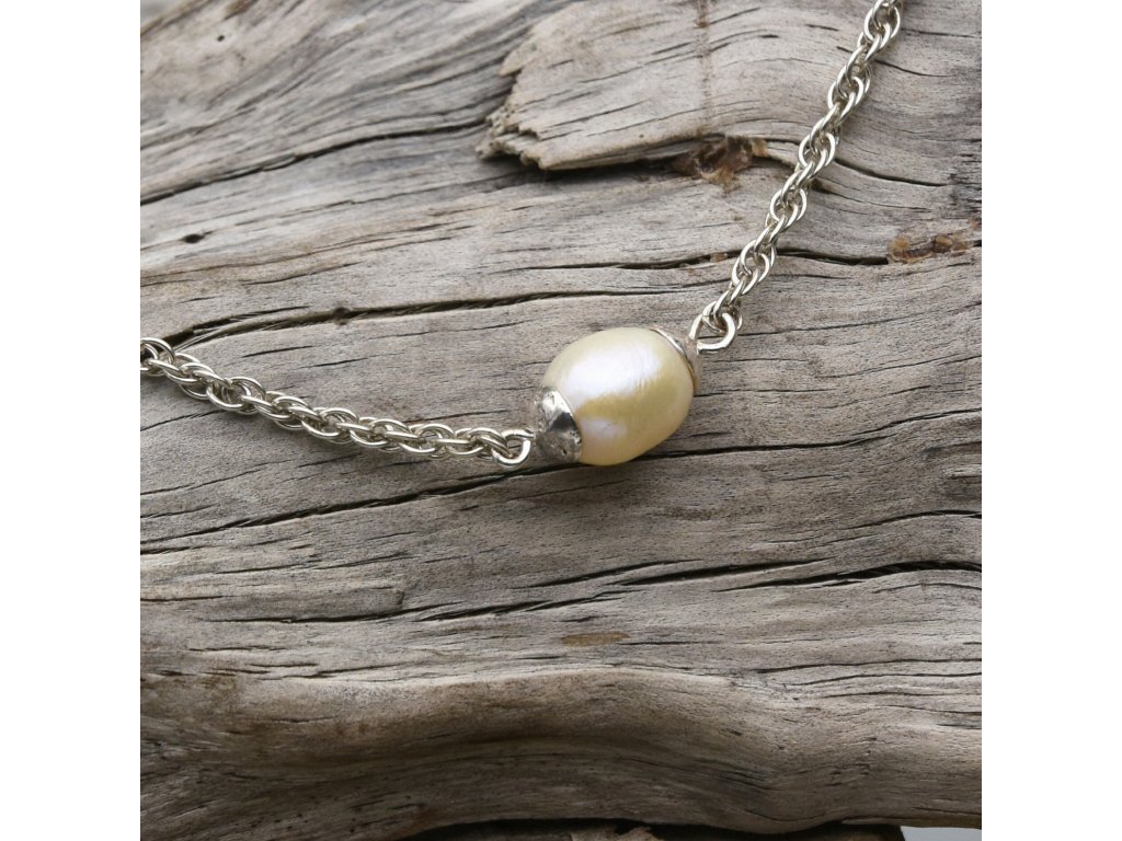 Říční perly (fresh water pearls) jsem osobně vybral na svých cestách po Indonésii, kde mě zaujaly svou přirozenou krásou a nepravidelnými tvary. Každá perla má vlastní charakter a jemnou perleť, díky které je každý šperk originální kousek přírody. Perly jsem ručně zasadil do stříbra a upravil tak, aby náramek působil lehce, elegantně a příjemně při každodenním nošení.