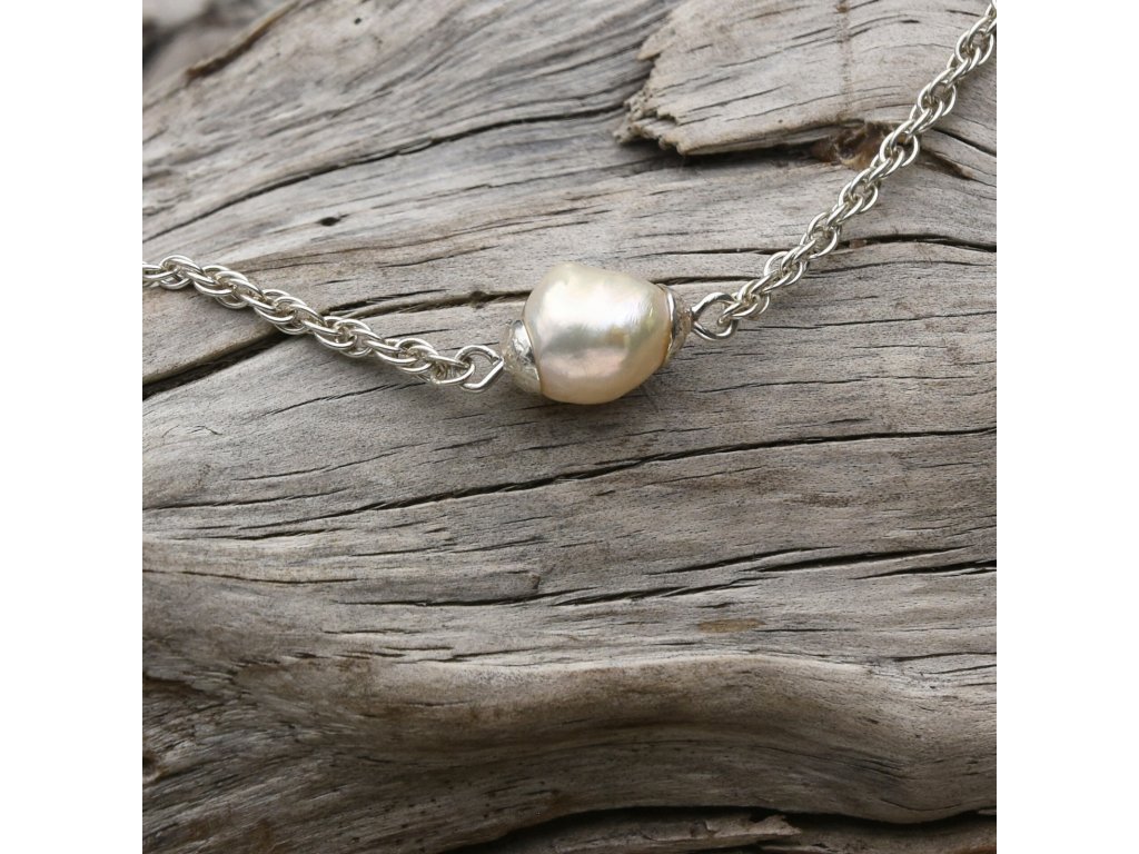 Říční perly (fresh water pearls) jsem osobně vybral na svých cestách po Indonésii, kde mě zaujaly svou přirozenou krásou a nepravidelnými tvary. Každá perla má vlastní charakter a jemnou perleť, díky které je každý šperk originální kousek přírody. Perly jsem ručně zasadil do stříbra a upravil tak, aby náramek působil lehce, elegantně a příjemně při každodenním nošení.