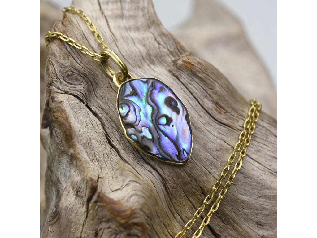 Paua perleť s výraznou modrozelenou hrou barev jsem osobně vybral na svých cestách za dobrodružstvím a poklady. Každý kousek nese vlastní kresbu, která z něj dělá originální dar přírody. Perleť jsem ručně zasadil do stříbra a dobrousil tak, aby přívěs působil lehce a příjemně při každodenním nošení.